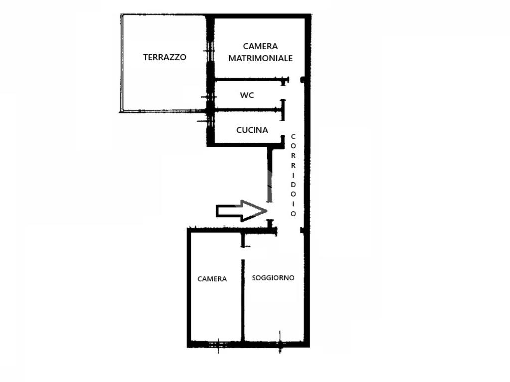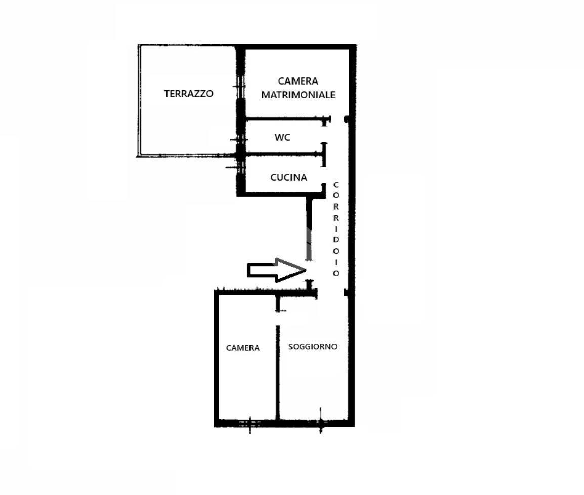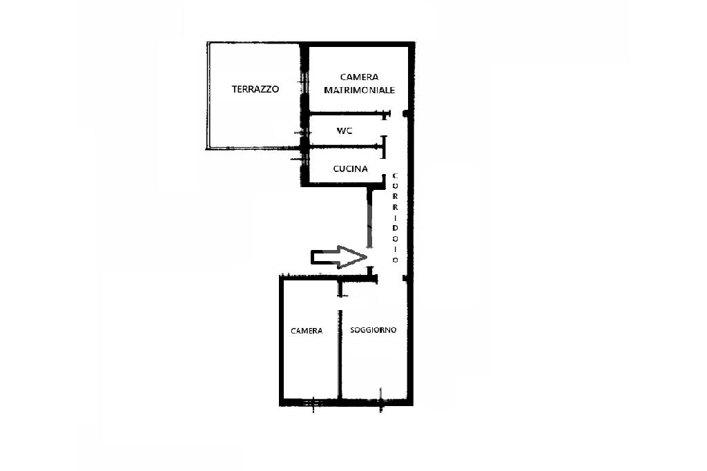 Per gli amanti delle ampie zone living, in fase di ristrutturazione si potrebbe valutare l'inversione tra cucina e bagno. Questa soluzione permetterebbe di abbattere la parete che separa i due ambienti attuali e realizzare un'ampia zona giorno con cucina a vista, in diretto collegamento con il terrazzo.