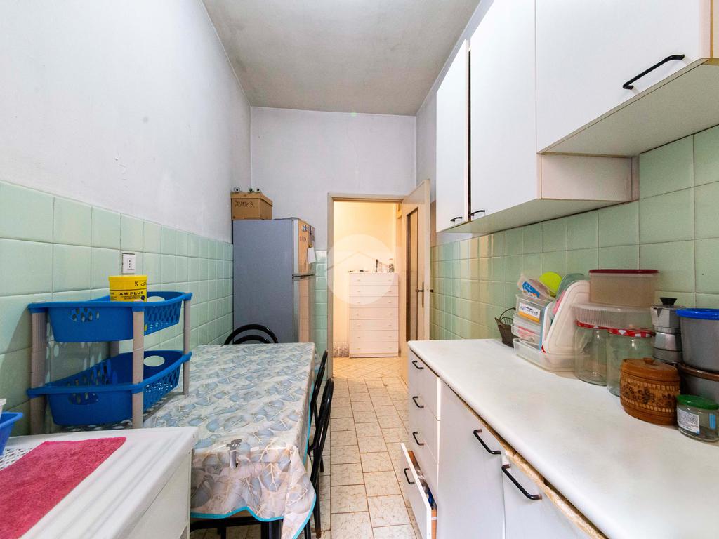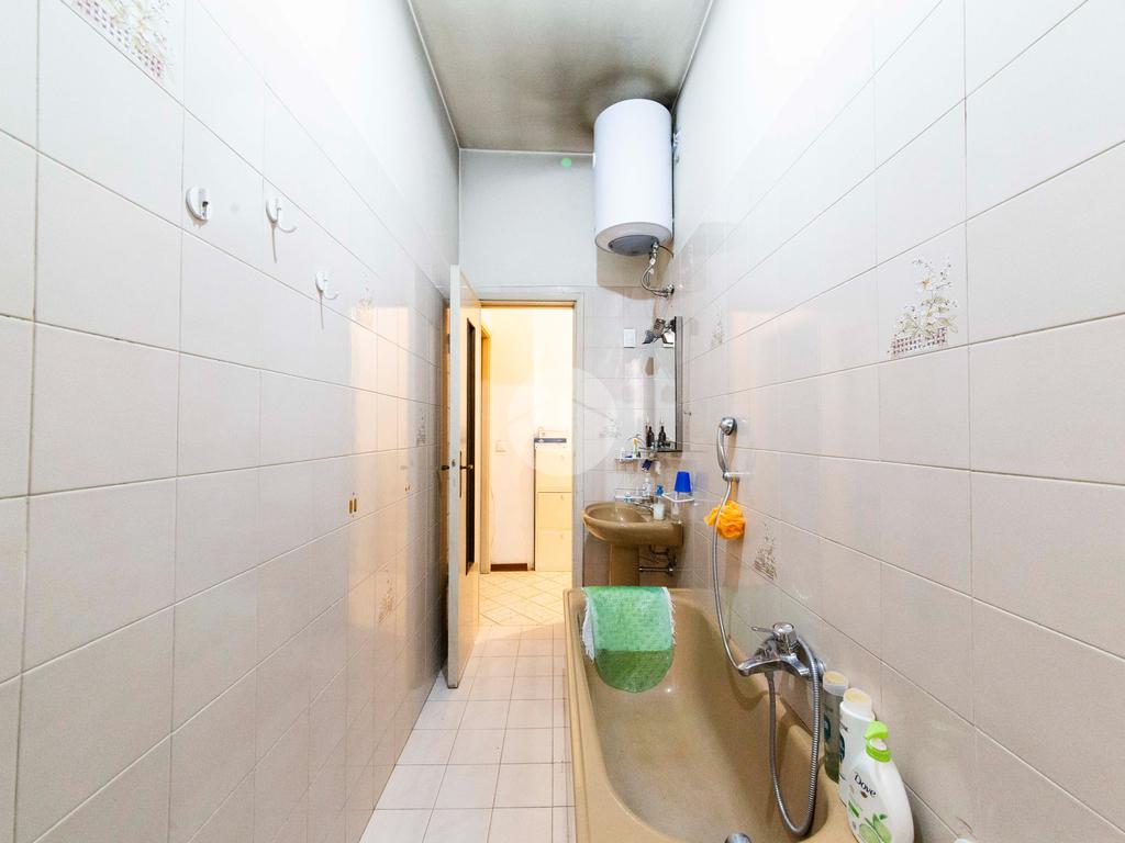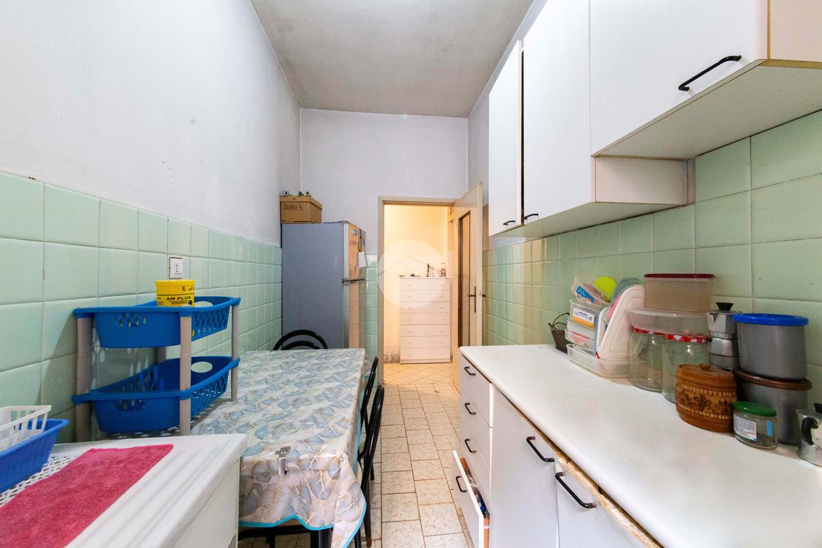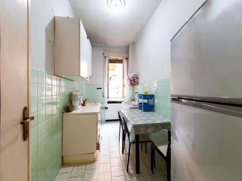 A seguire, sempre con la stessa esposizione luminosa, si trovano il bagno finestrato con box doccia e la cucina abitabile, ideale per chi ama cucinare in un ambiente spazioso e ben arieggiato.