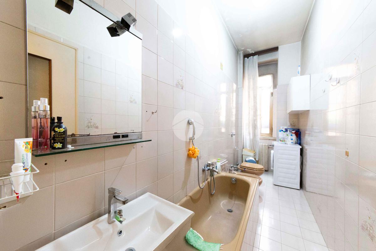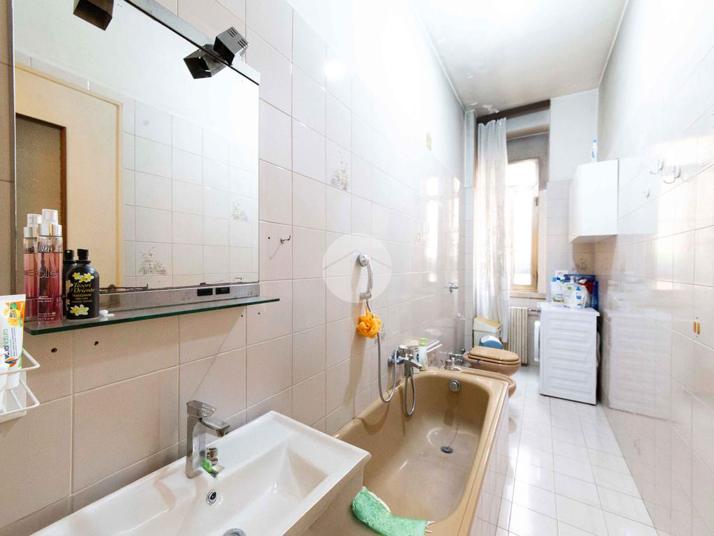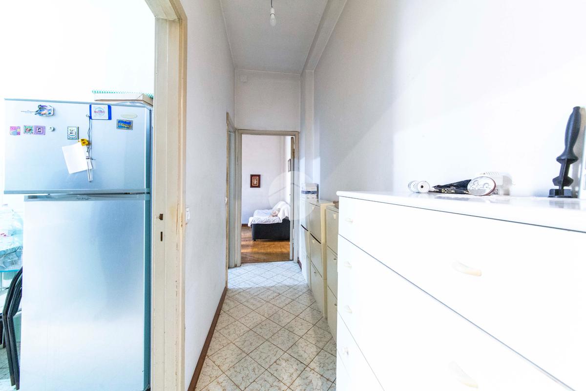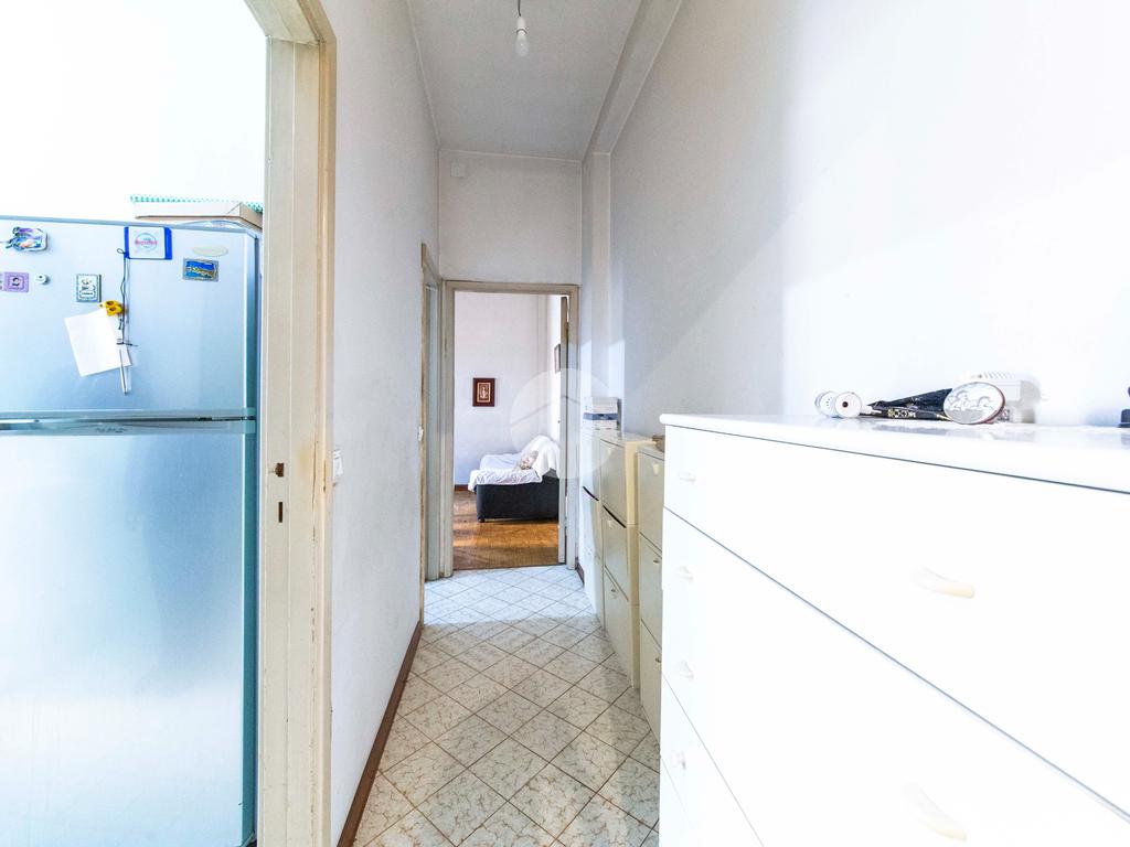A seguire, sempre con la stessa esposizione luminosa, si trovano il bagno finestrato con box doccia e la cucina abitabile, ideale per chi ama cucinare in un ambiente spazioso e ben arieggiato.