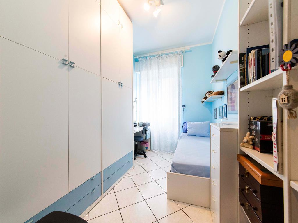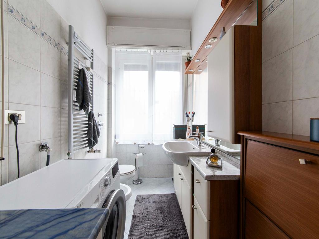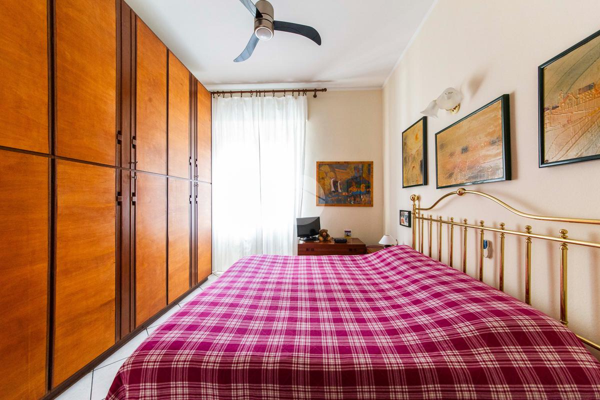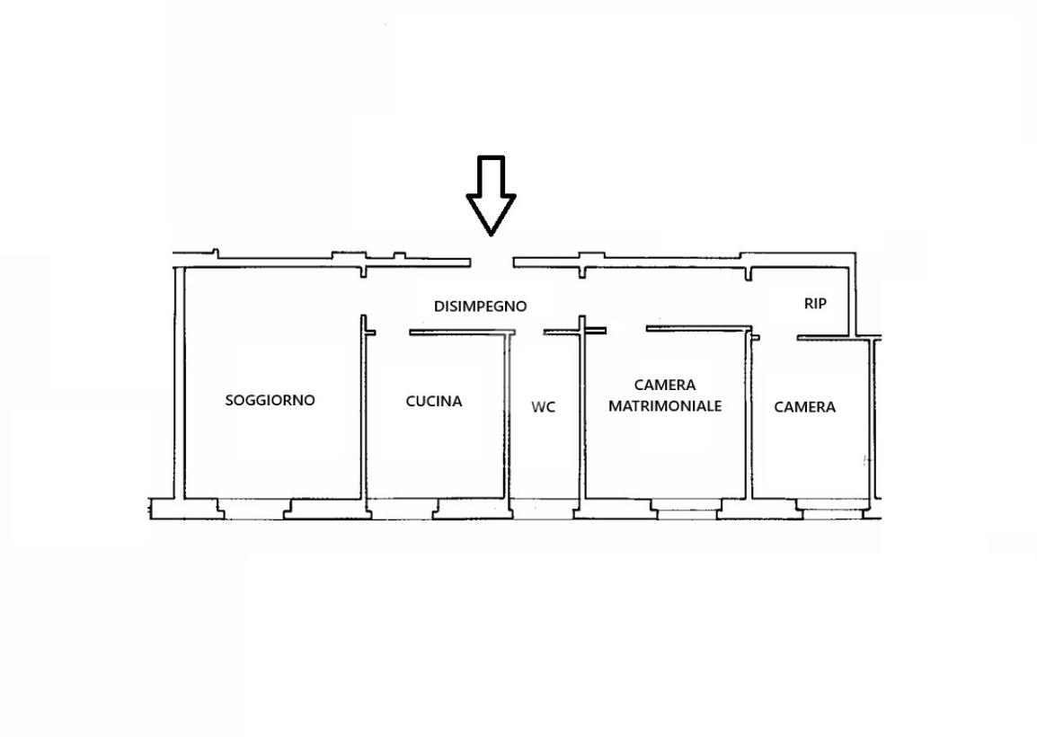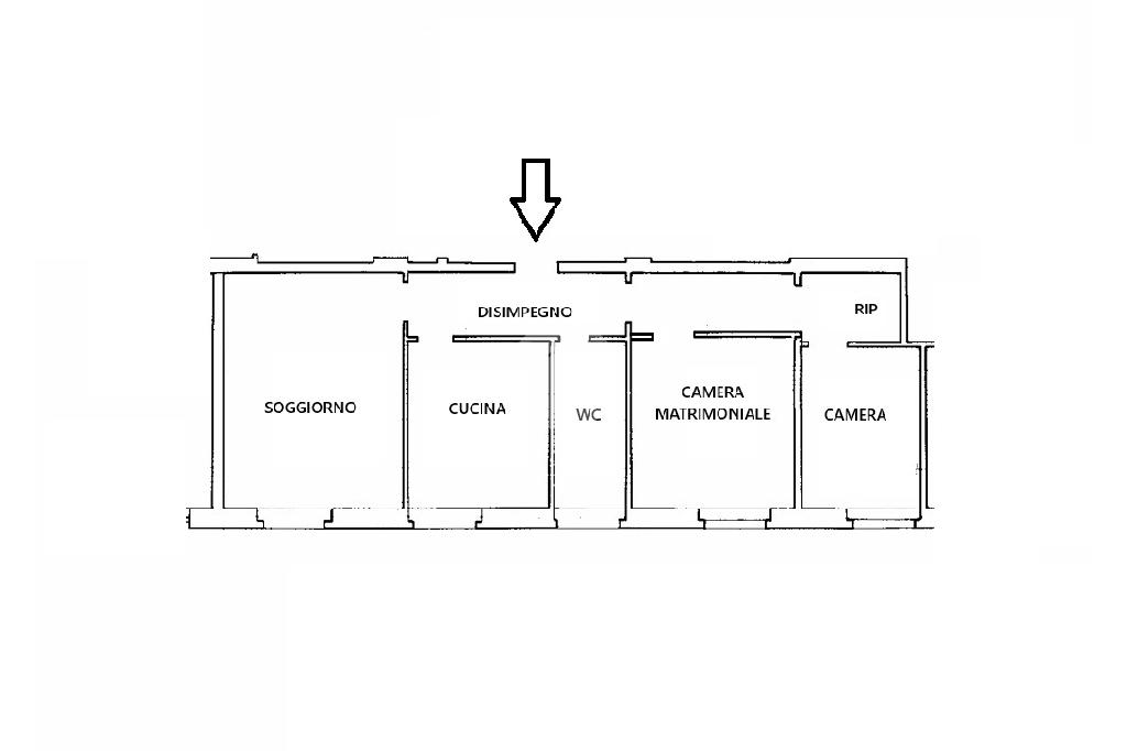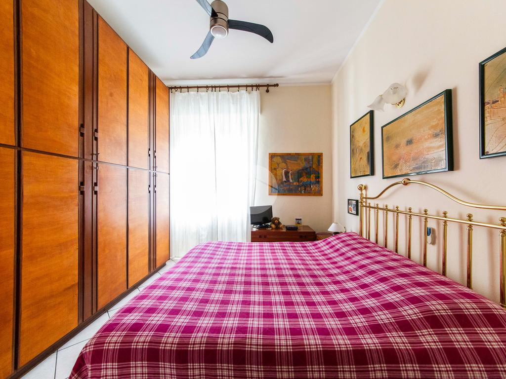 A seguire, sempre con la stessa esposizione luminosa, si trovano il bagno finestrato con box doccia, la camera matrimoniale e la camera singola.