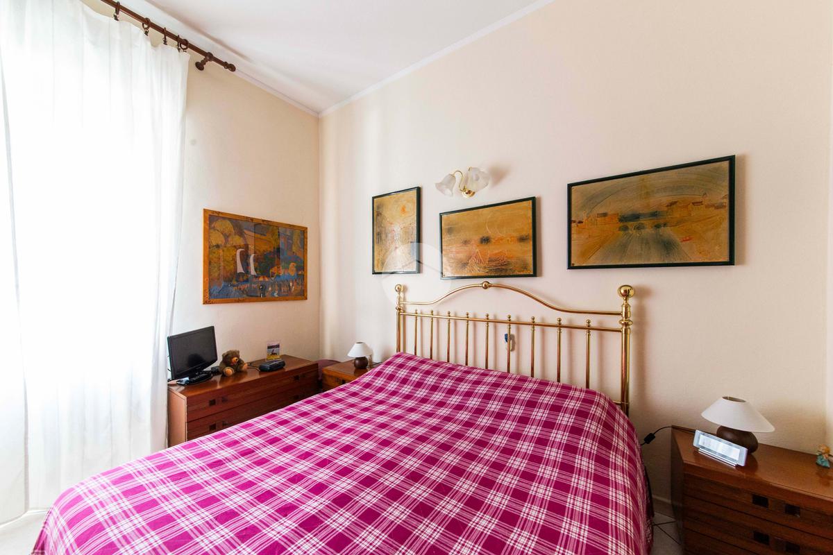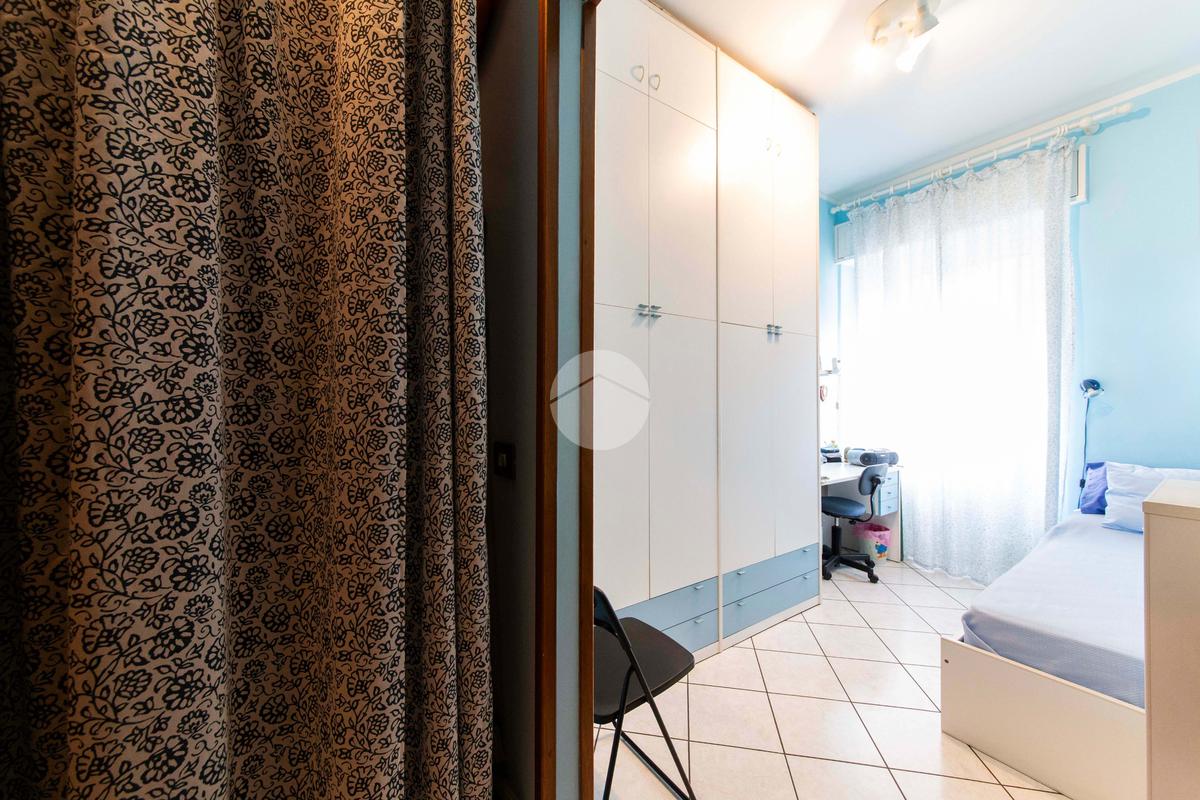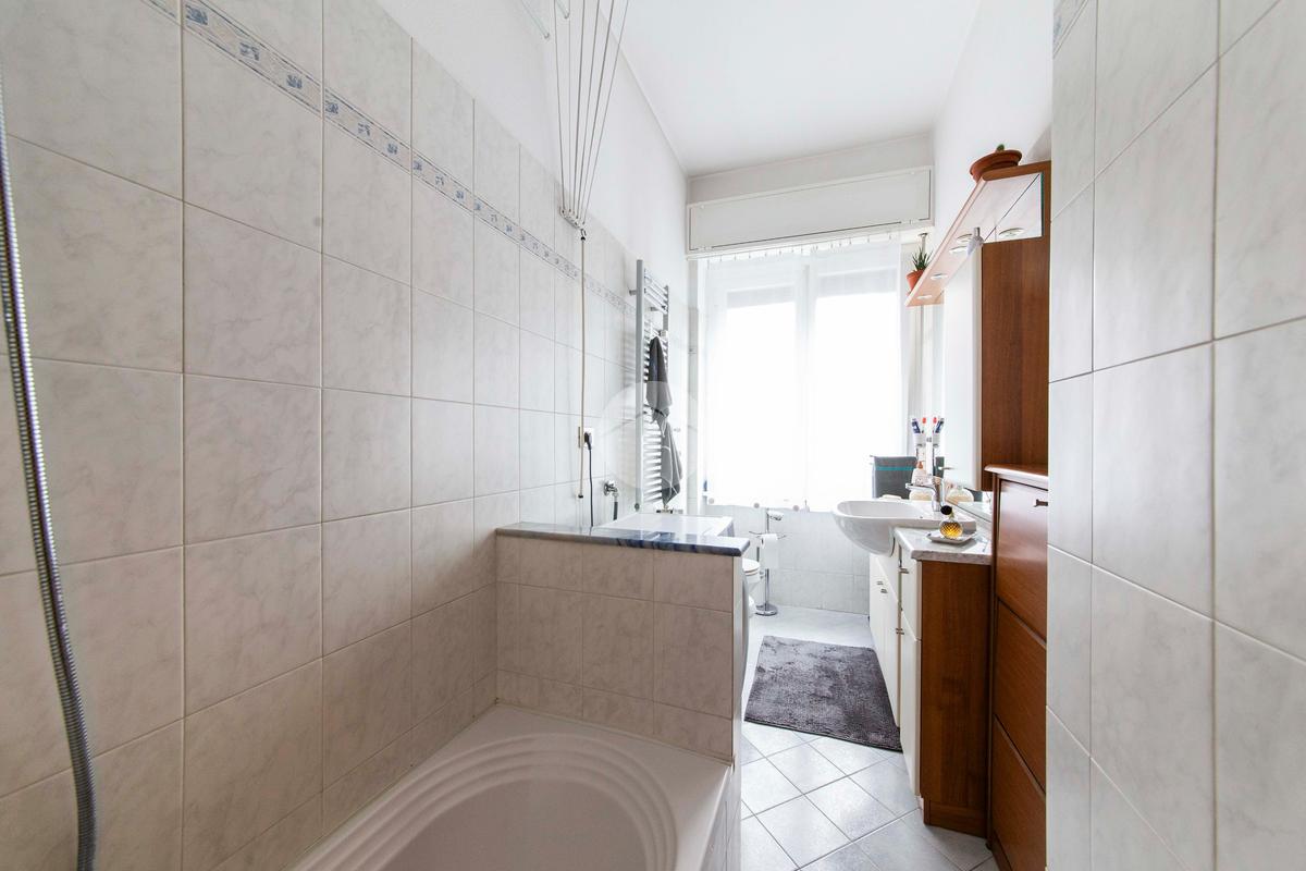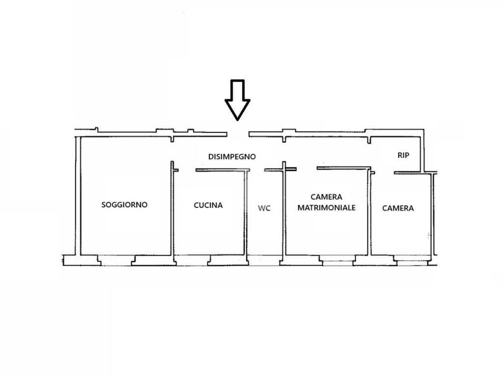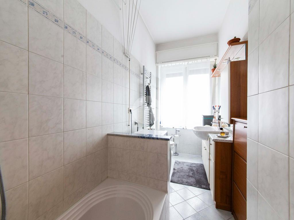 A seguire, sempre con la stessa esposizione luminosa, si trovano il bagno finestrato con box doccia, la camera matrimoniale e la camera singola.