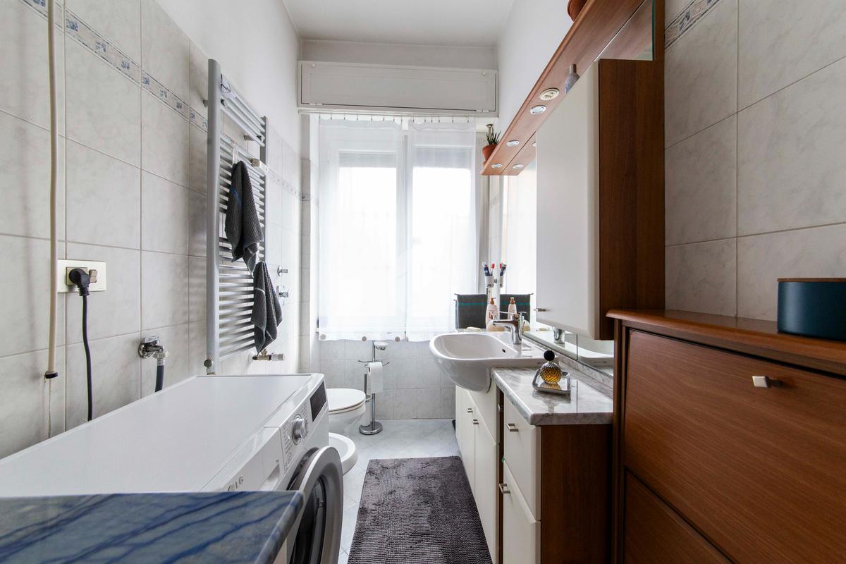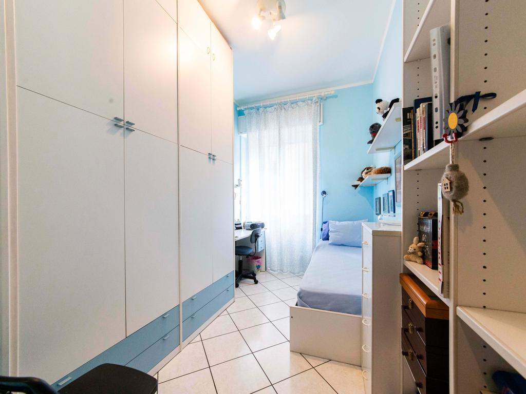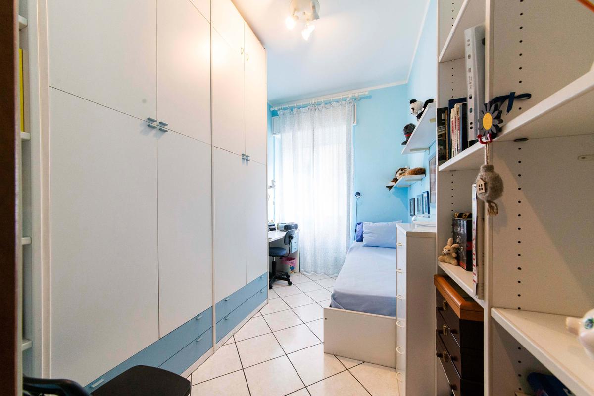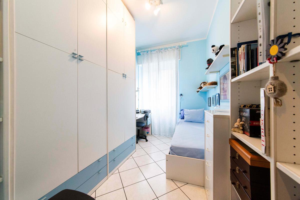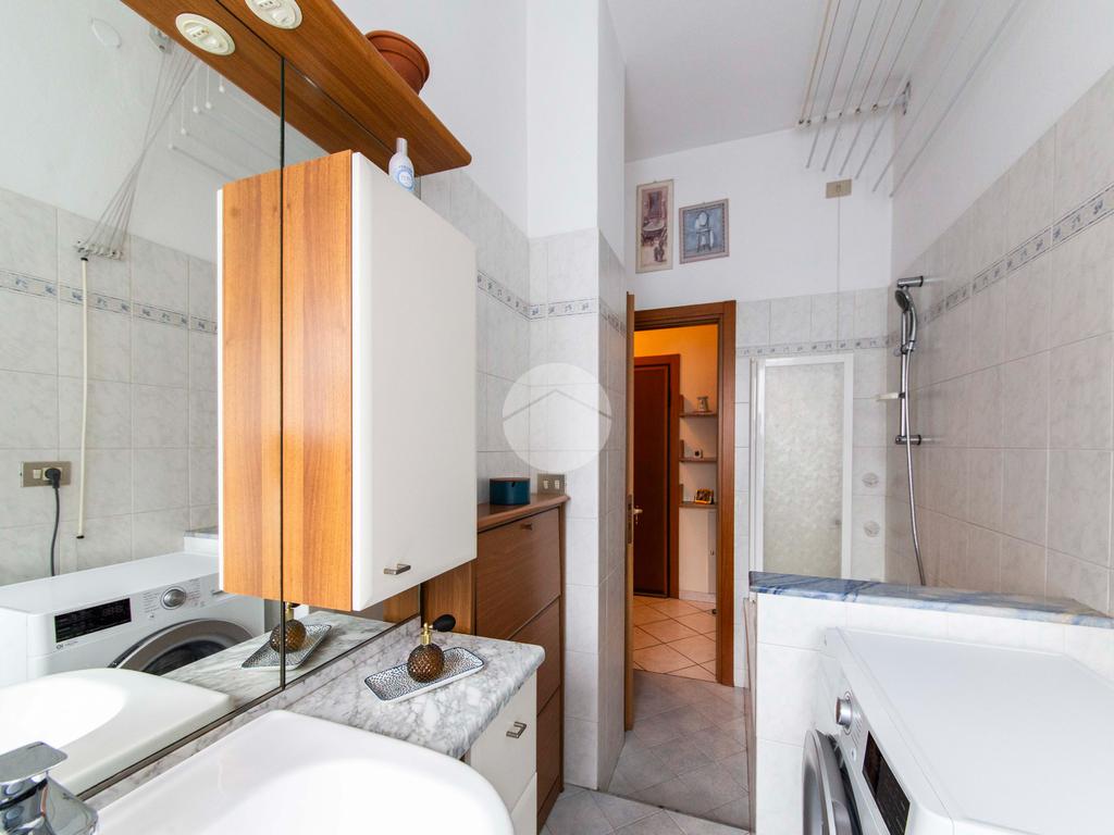 A seguire, sempre con la stessa esposizione luminosa, si trovano il bagno finestrato con box doccia, la camera matrimoniale e la camera singola.