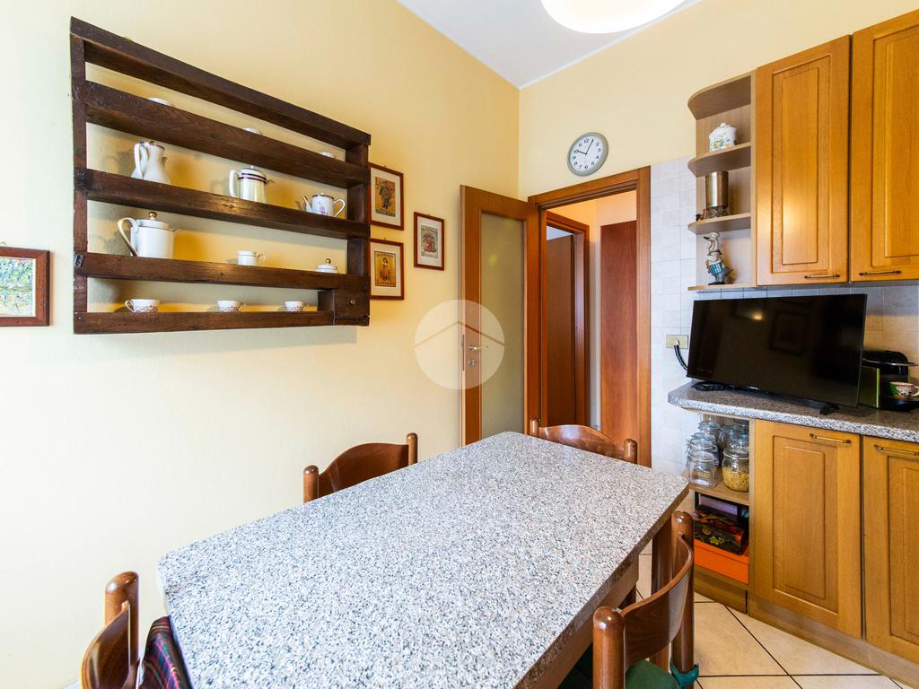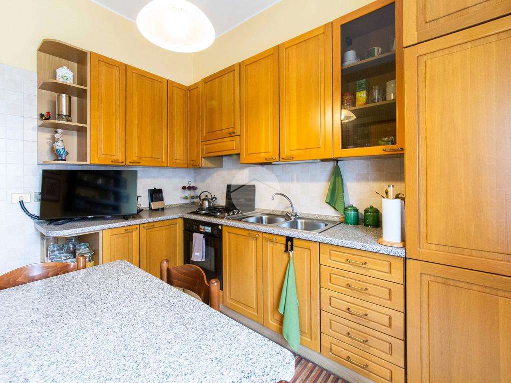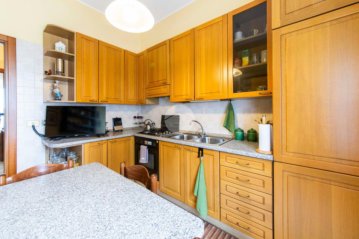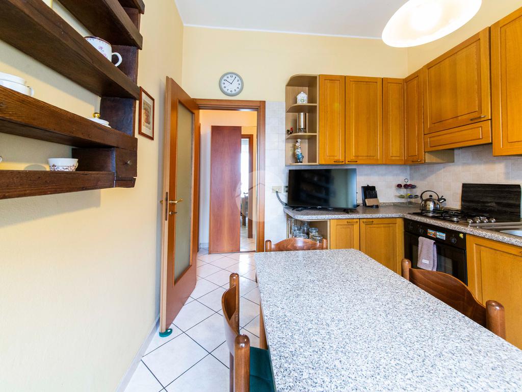 Ingresso in corridoio e dove da destra verso sinistra troviamo in primis l'ampio soggiorno con piacevole affaccio su Via Grigna. Segue con medesima esposizione la cucina abitabile.