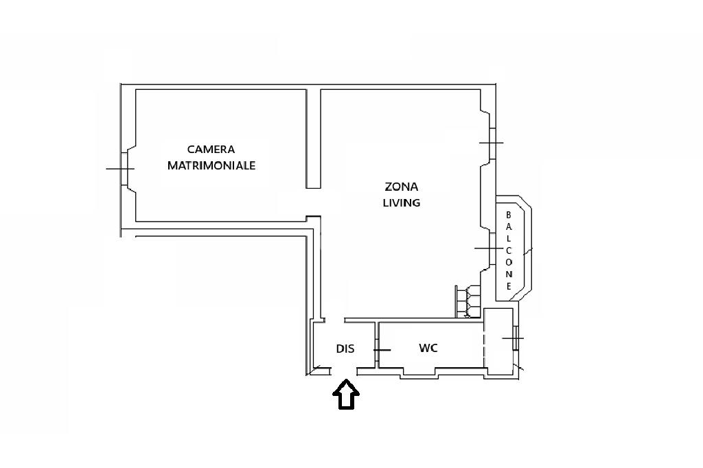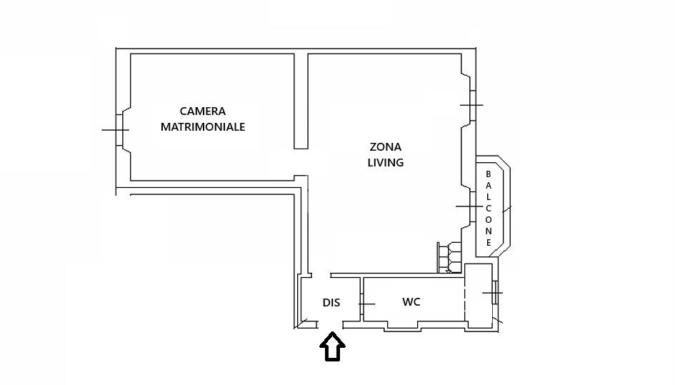 L'ingresso si apre su un disimpegno che conduce direttamente alla luminosa zona living con cucina a vista, con porta finestra che consente l'accesso al balcone, con gradevole affaccio sul cortile condominiale.