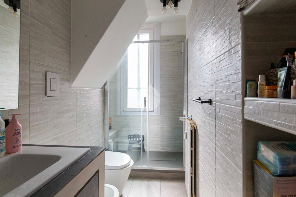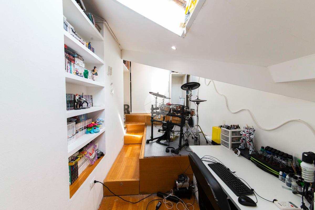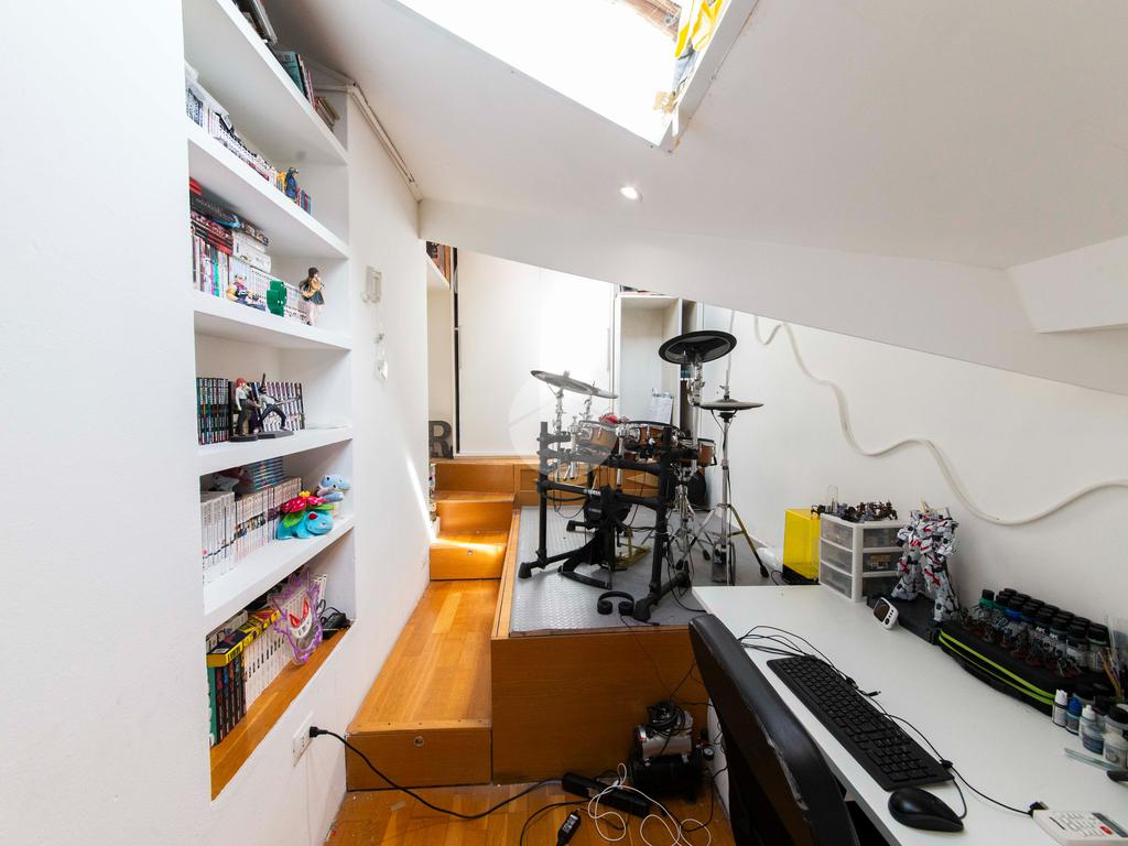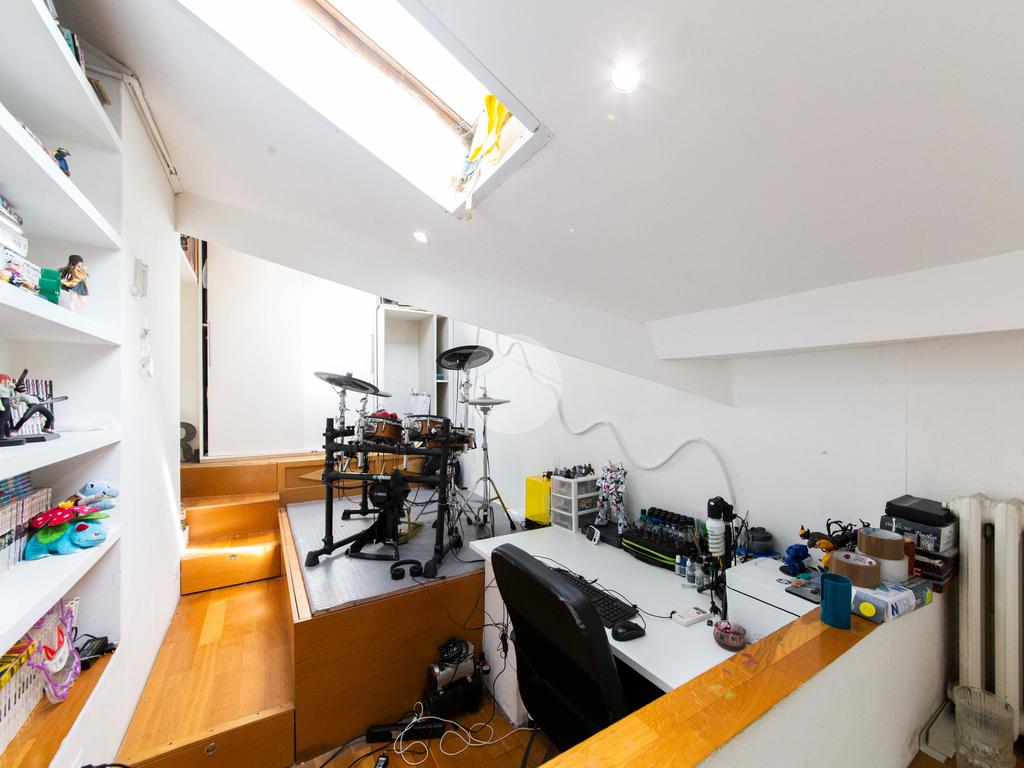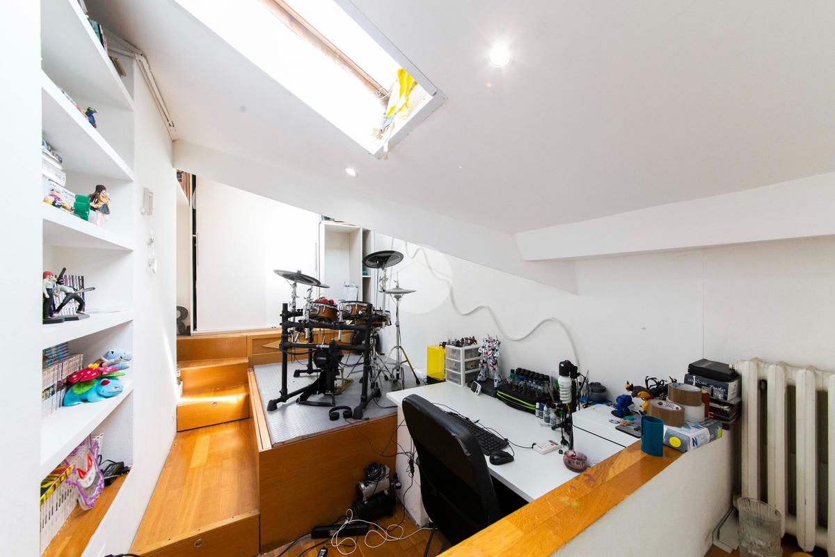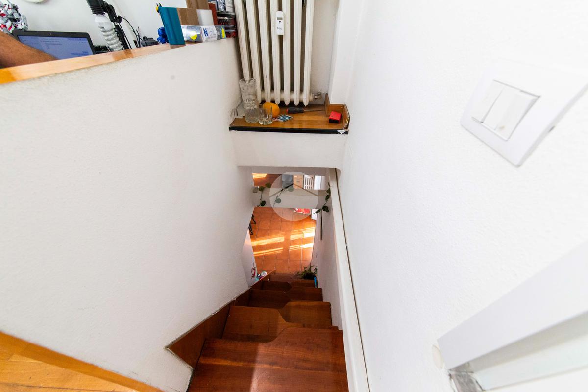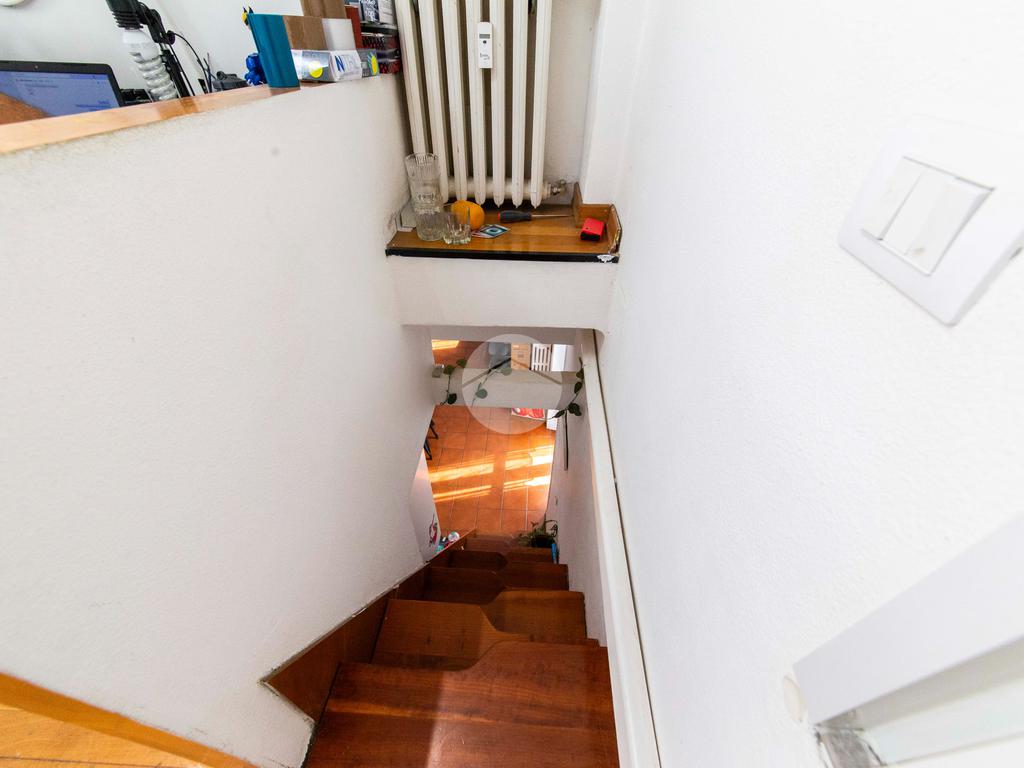 Alla destra del soggiorno si trovano le scale che conducono al piano superiore, dove è situata una prima camera da letto dotata di bagno en suite, offrendo comfort e privacy.