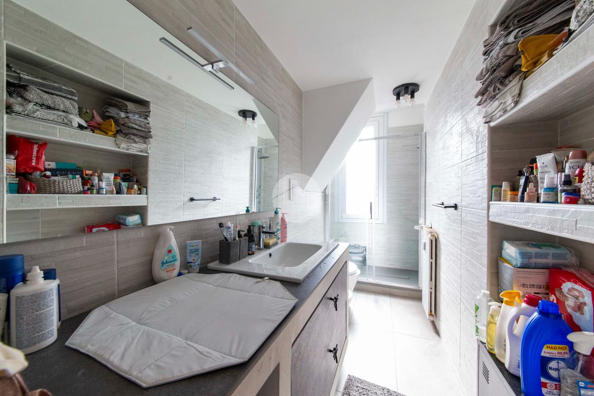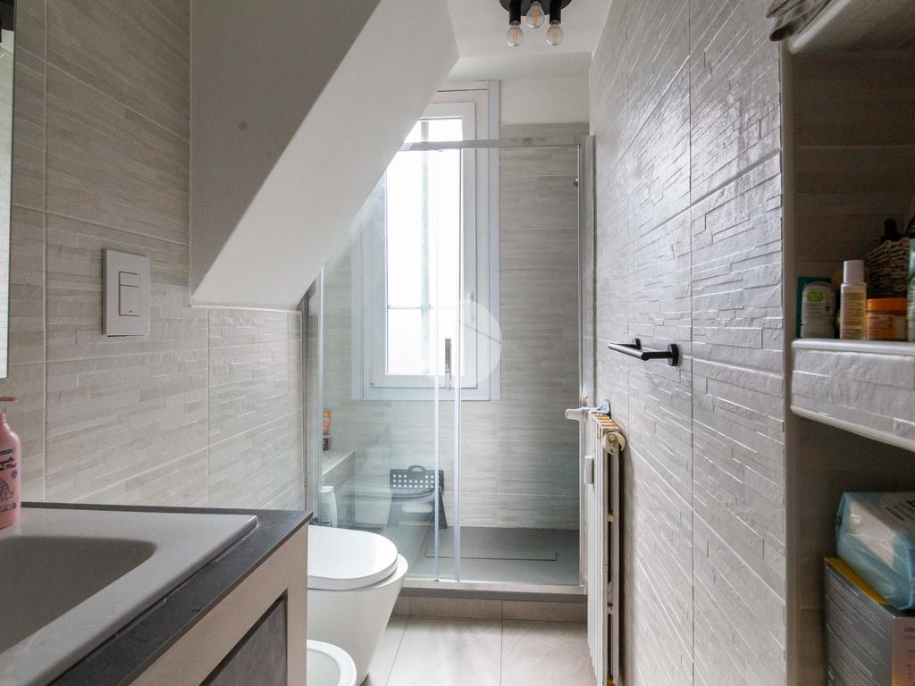 Ritornando nella zona giorno, esposizione opposta, si accede alla spaziosa camera matrimoniale, anch'essa con piacevole affaccio su un altro lato del cortile condominiale e con cabina armadio, pensata ad offrire uno spazio dedicato alla cura del proprio stile. Completa la proprietà un secondo bagno, finestrato e con box doccia, anch'esso con la stessa esposizione della zona living.