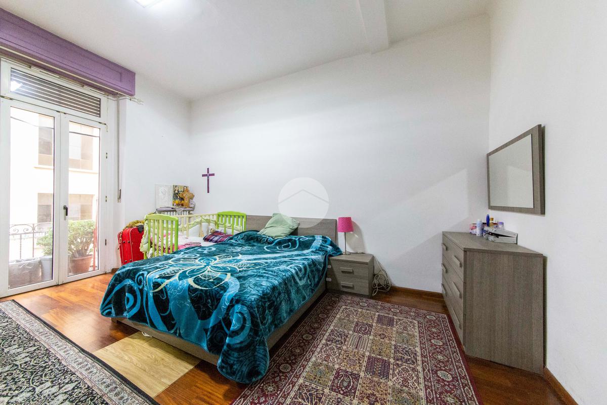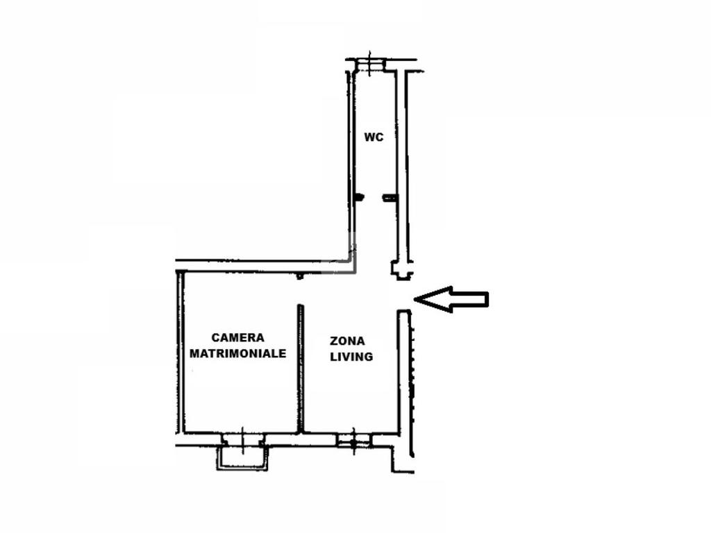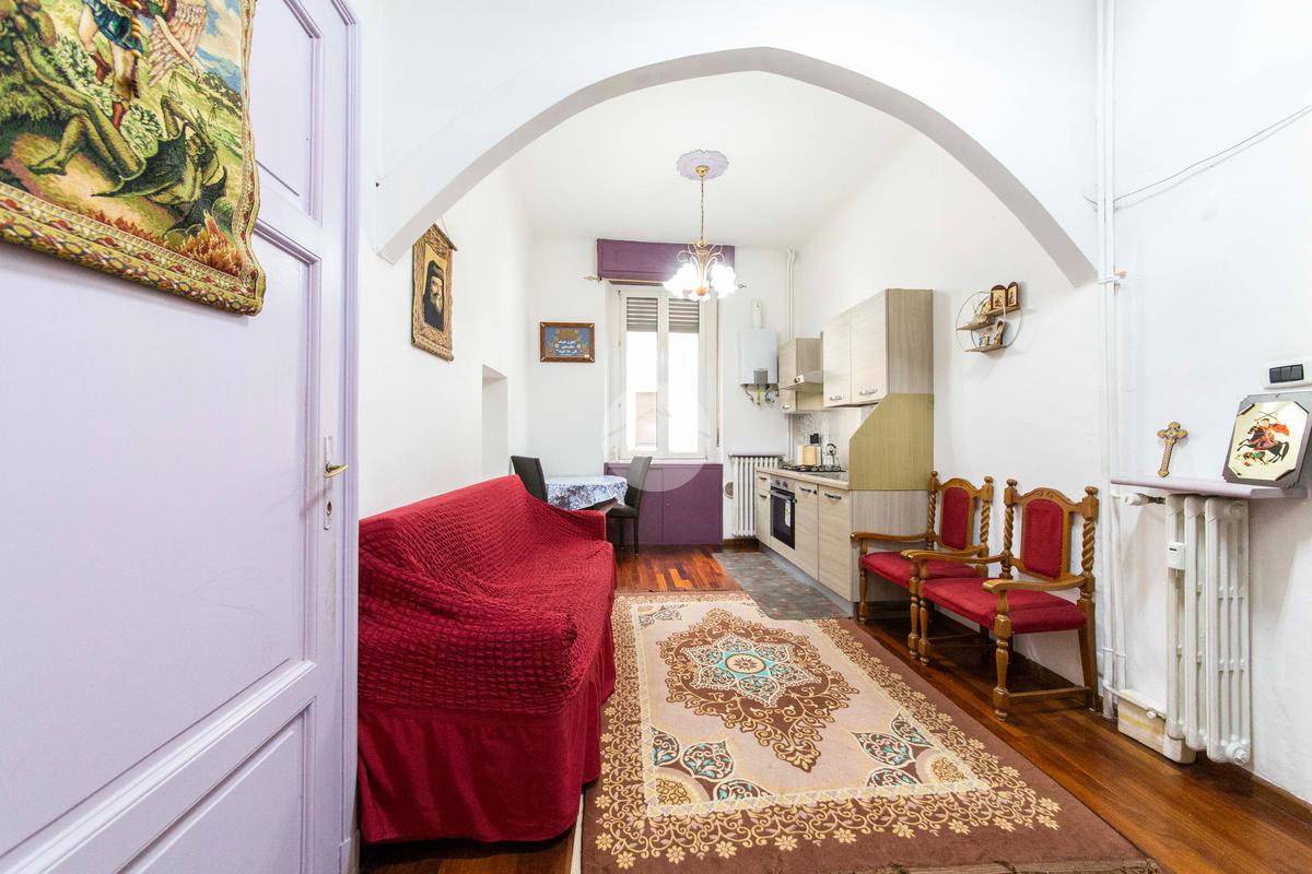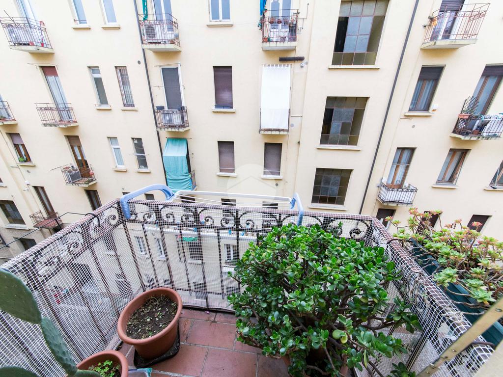 Ingresso in zona living con cucina a vista e piacevole affaccio sul cortile interno. Segue, con medesima esposizione, la camera matrimoniale ampiamente finestrata con porta finestra che dà accesso al balcone dell’immobile.