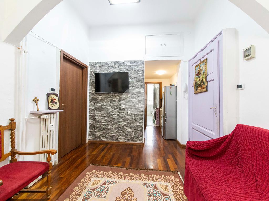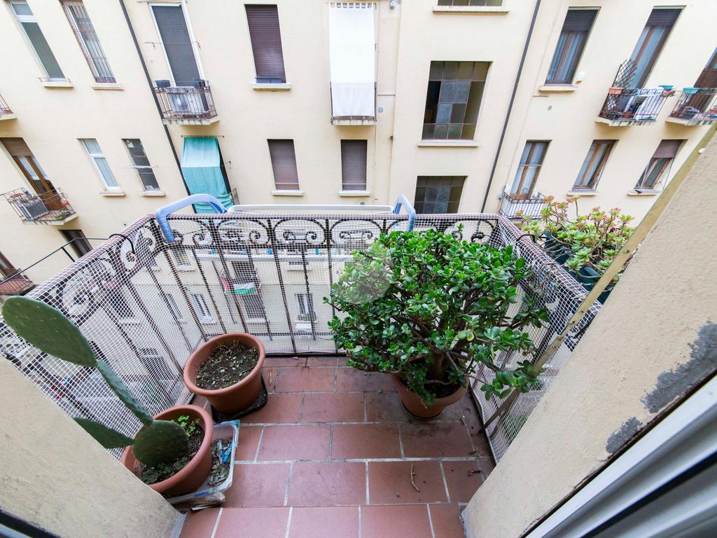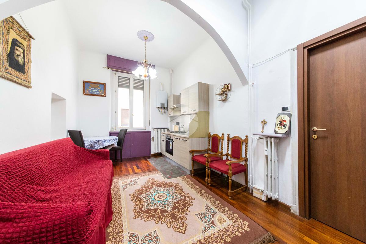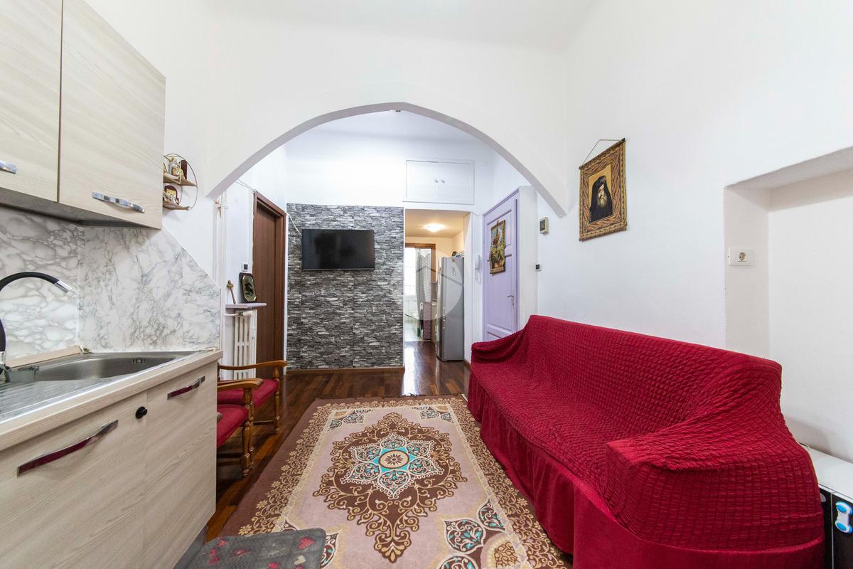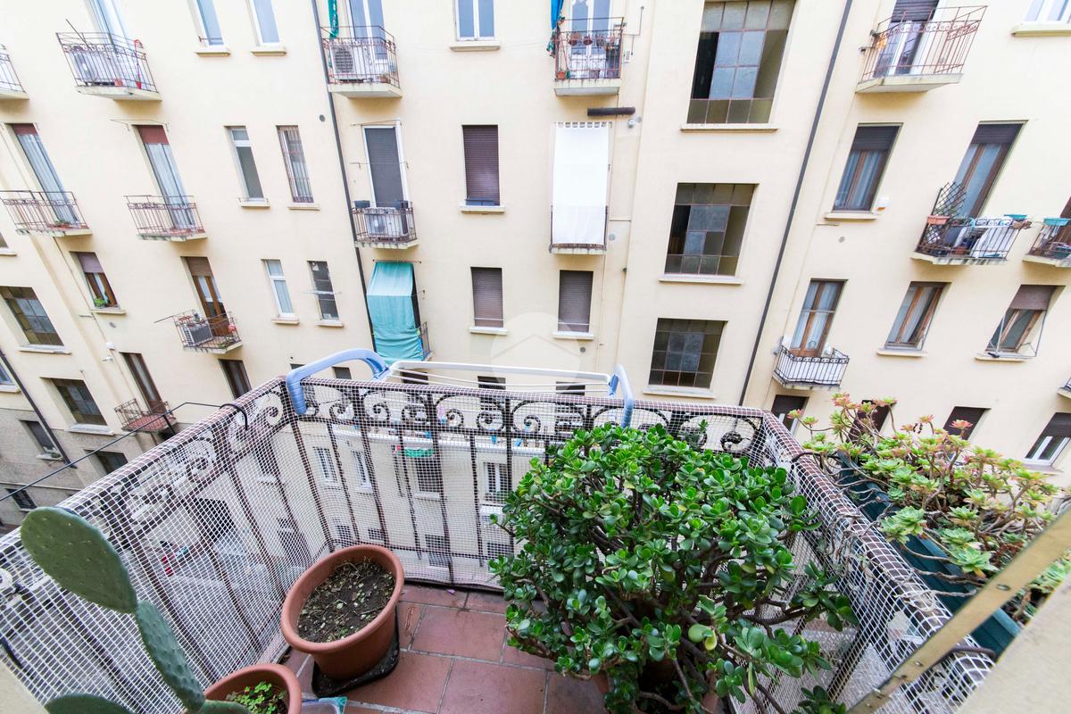Ingresso in zona living con cucina a vista e piacevole affaccio sul cortile interno. Segue, con medesima esposizione, la camera matrimoniale ampiamente finestrata con porta finestra che dà accesso al balcone dell’immobile.