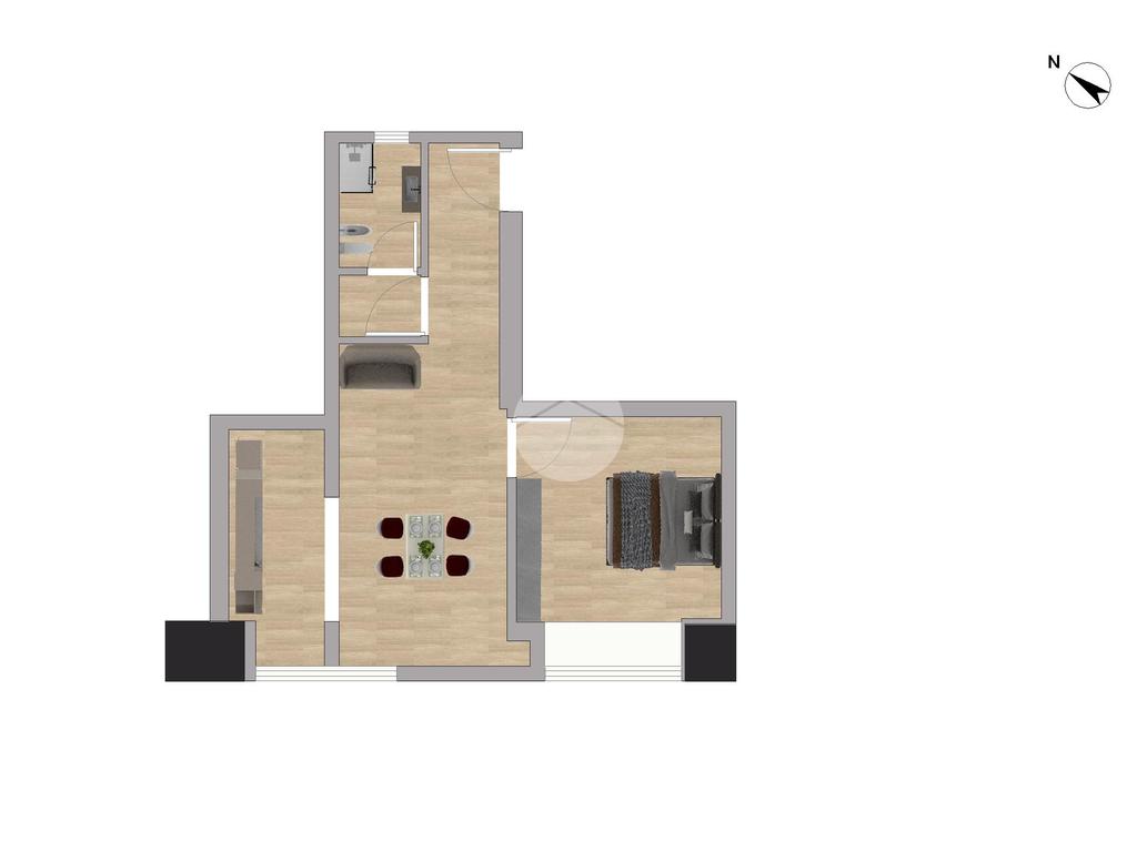 Un layout ben progettato che ottimizza gli spazi, garantendo comfort e luminosità in ogni ambiente.