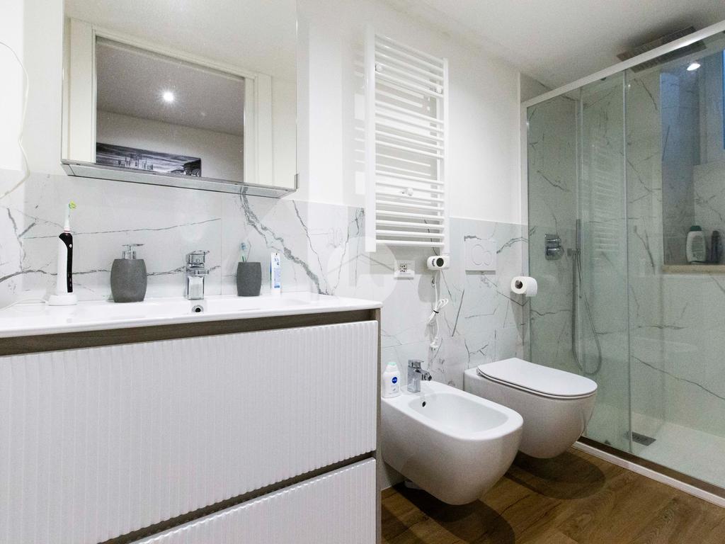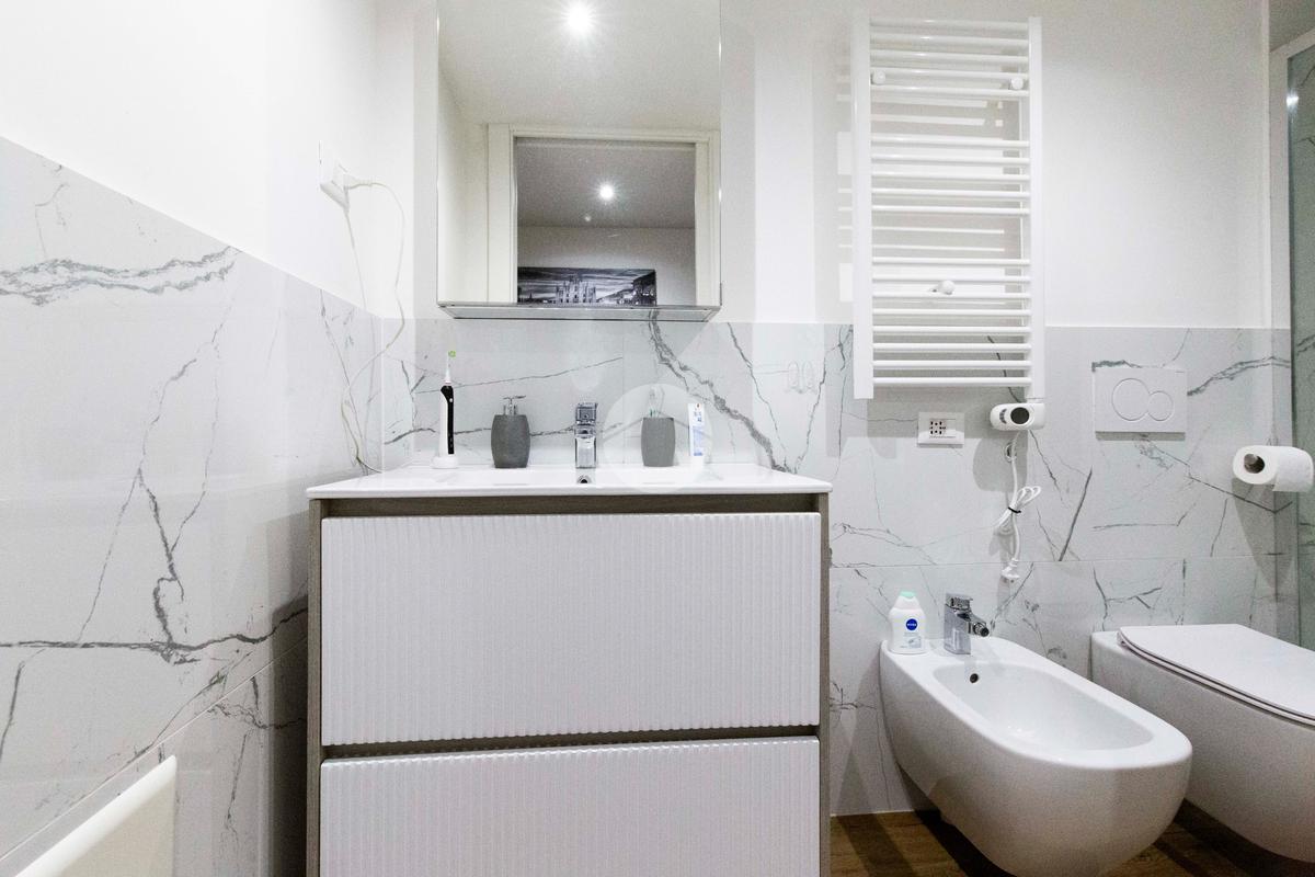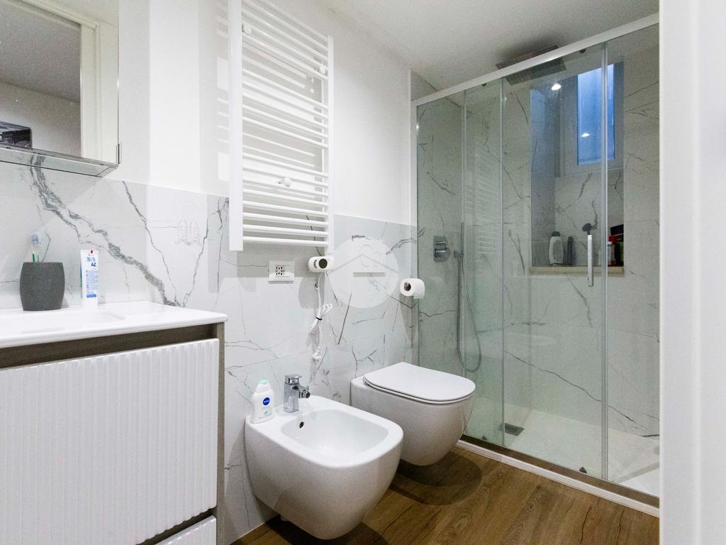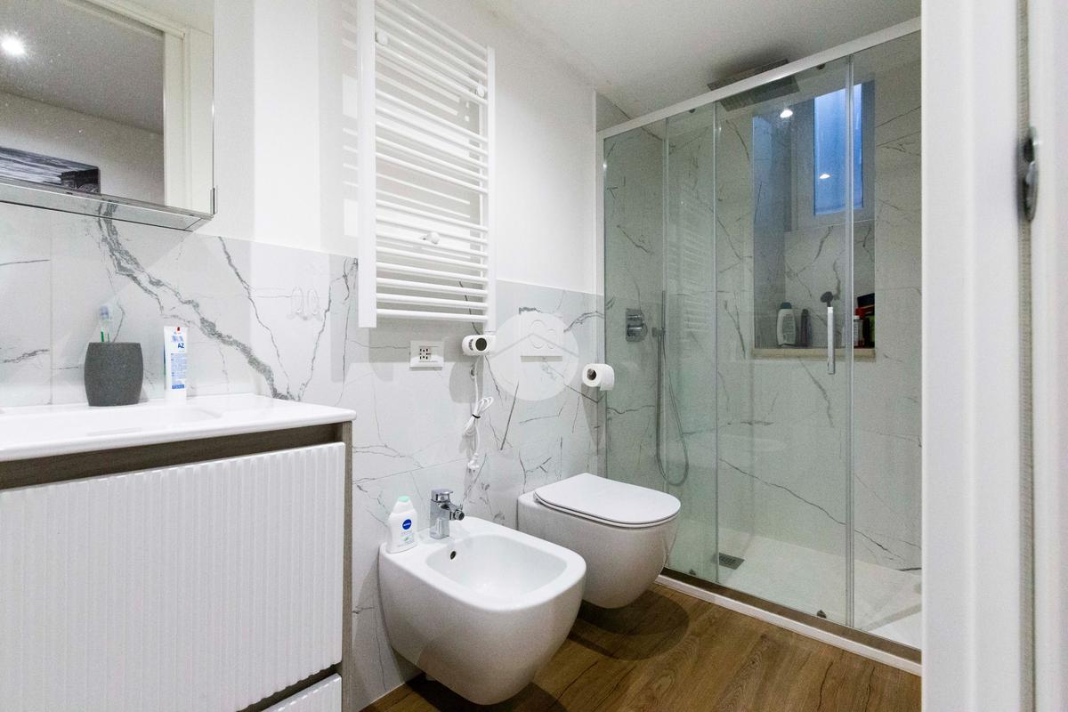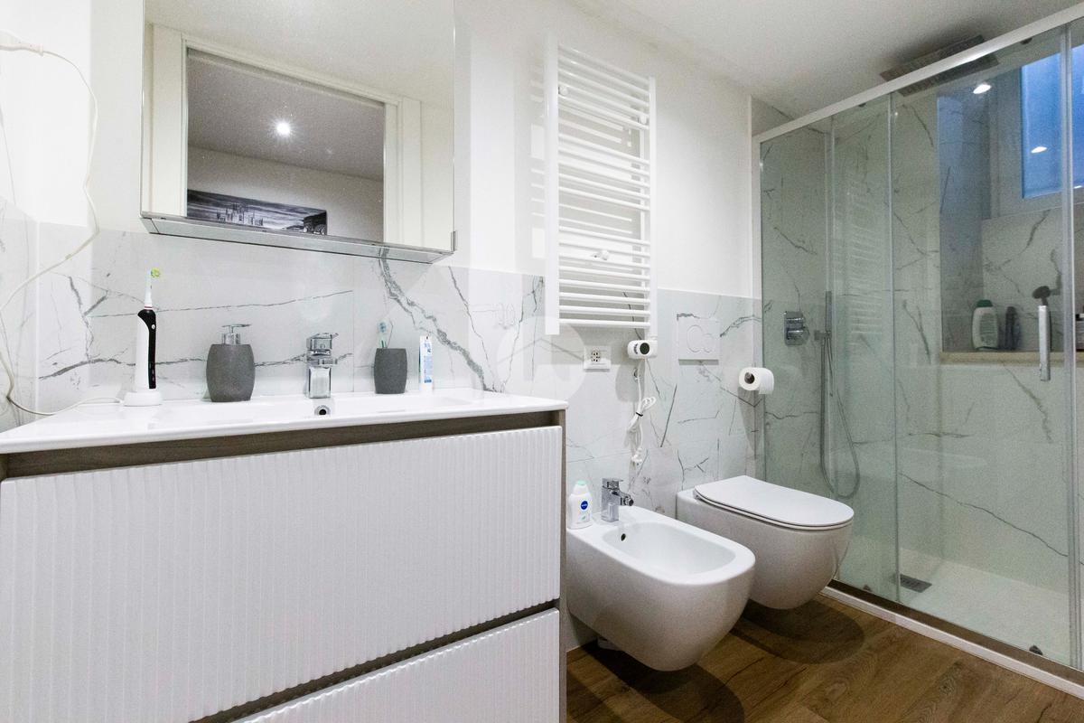 Infine con esposizione opposta, si trova il bagno finestrato, dotato di box doccia.