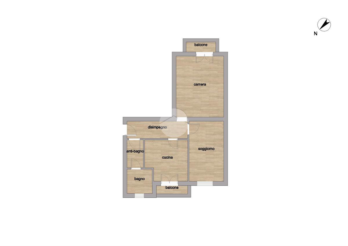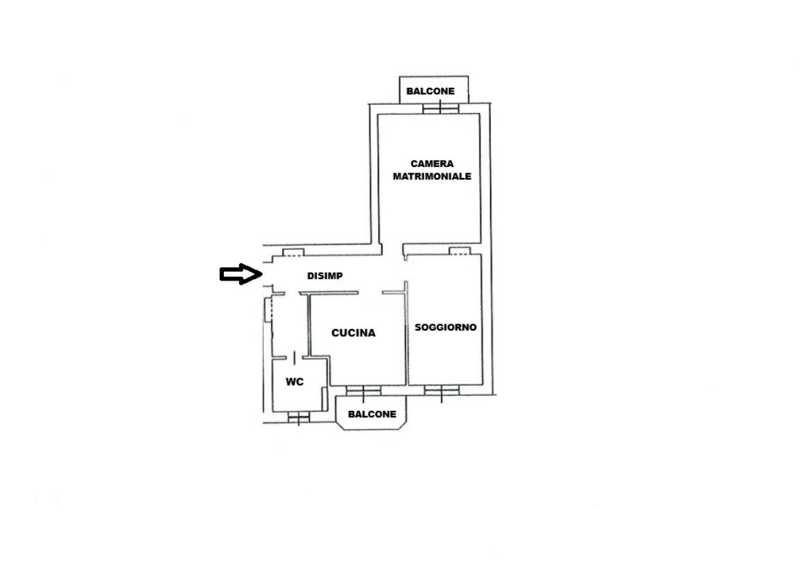 Ingresso in disimpegno dal quale possiamo accedere ai vari ambienti della casa e dove rispettivamente troviamo, da destra verso sinistra, in primis l'ampia cucina abitabile con porta finestra che dà accesso al primo balcone con piacevole affaccio sul cortile condominiale. Segue, con medesima esposizione, il soggiorno finestrato.